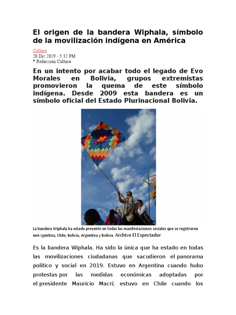 El Origen De La Bandera Wiphala Pdf Bolivia Los Simbolos